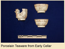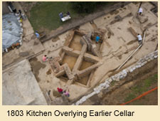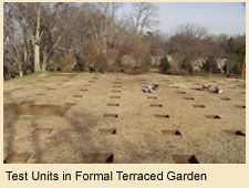 More intensive testing in the yard immediately surrounding the house uncovered a late 17th century cellar that may have been a store, two first period dependencies dating to ca. 1730, four second period dependencies dating to ca. 1800, and the remains of a formal terraced garden. Excavation of one-half of the garden revealed an unusual design with rectangular planting beds and border beds. The terraced garden was constructed during the major renovation of the plantation ca. 1800. JRIA also excavated the late 17th-century store and ca. 1800 kitchen and smokehouse prior to their reconstruction.
